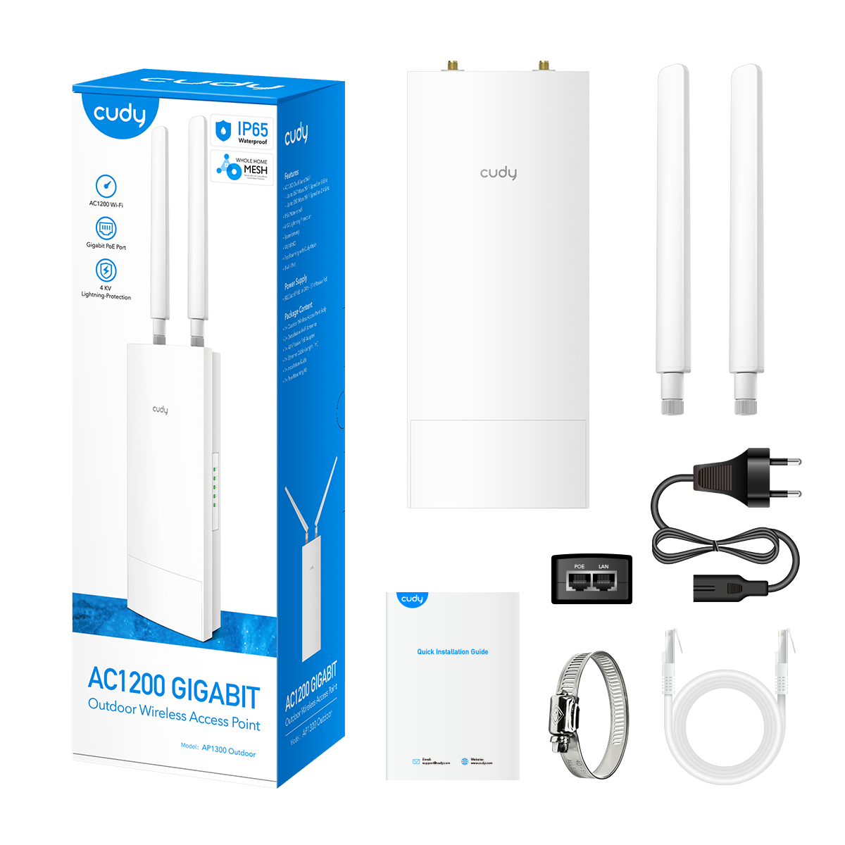 **جهاز واي فاي (AP) مثبت على الجدران أو الأعمدة، مع هيكل خارجي بتصنيف IP65، وتقنية PoE، ويدعم خاصية Cudy Mesh، مثالي للاستخدام في الحدائق والمزارع ومواقف السيارات.**