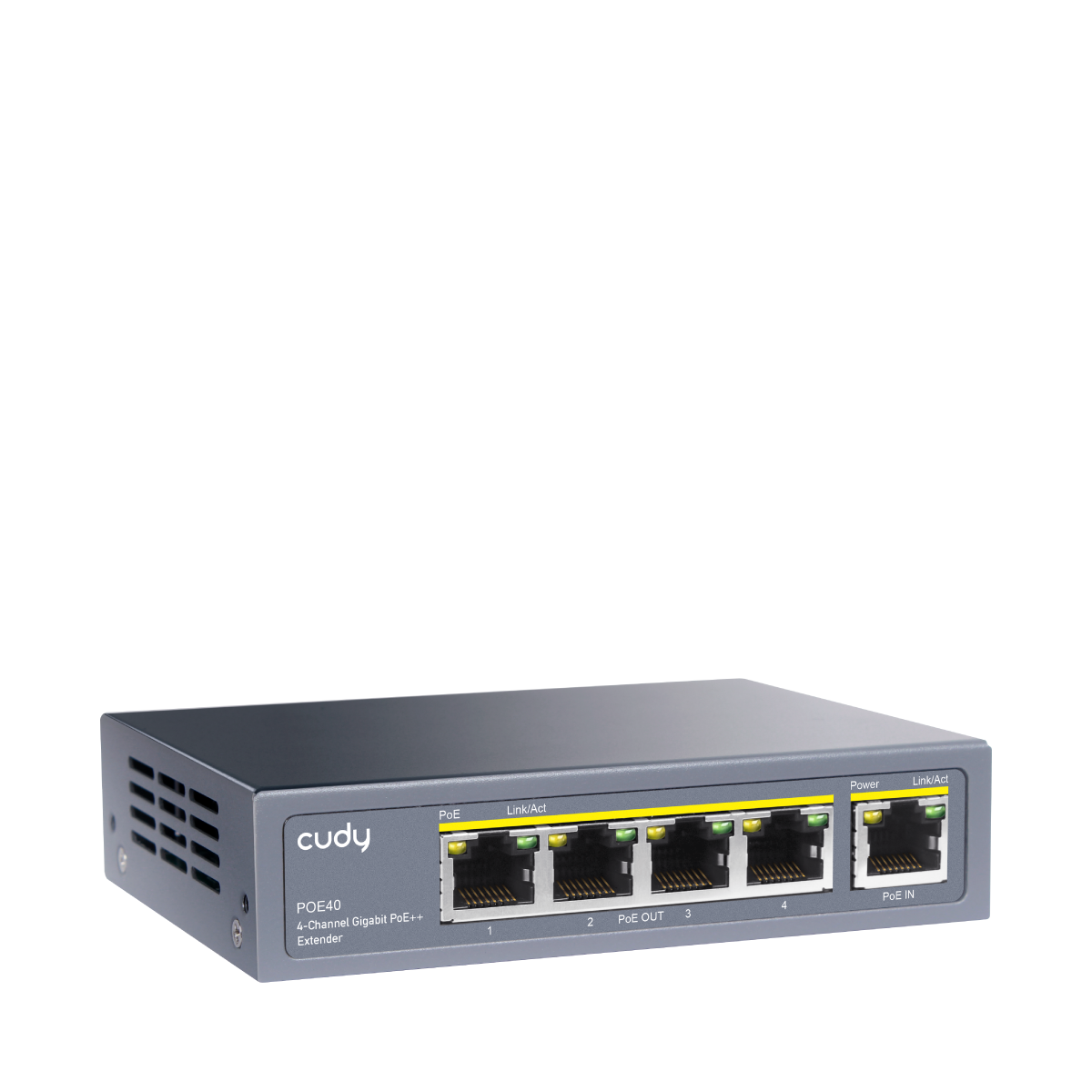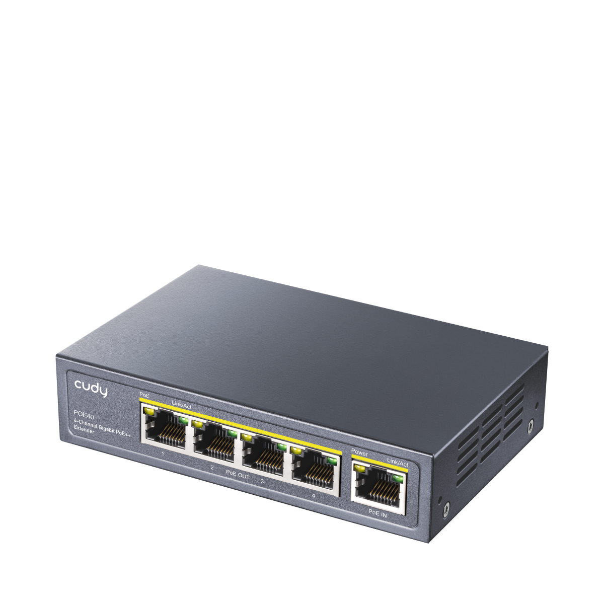 موسع نطاق PoE (PoE Extender) بـ 4 قنوات، يزيد مسافة نقل PoE لمسافة إضافية تصل إلى 100 متر.