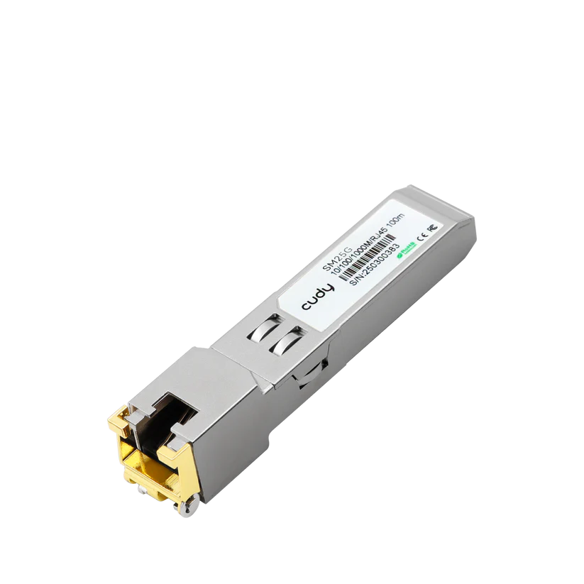 SFP to RJ45 transceiver that supports 2.5G connections up to 100 m.