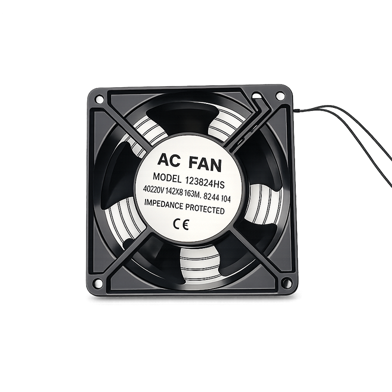 The SyscomX 123824HS is a heavy-duty AC axial cooling fan designed for optimal airflow and reliable thermal management in server racks, industrial cabinets, and electronic enclosures. Built with a sturdy frame and optimized blade design, it delivers consistent high-speed cooling performance while ensuring operational safety through built-in motor protection.