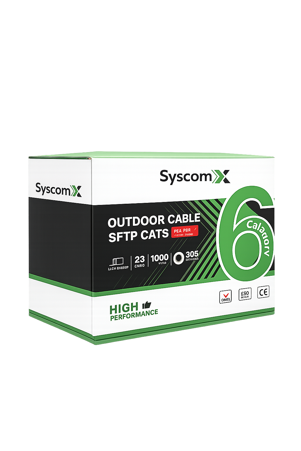SyscomX CAT6 S/FTP Outdoor Cable is a high-performance twisted-pair network cable designed for outdoor installations and long-distance networking applications. The cable features double shielding (braided shield + foil) to minimize electromagnetic interference (EMI) and crosstalk, ensuring stable signal transmission in environments with heavy electrical noise or dense cabling.